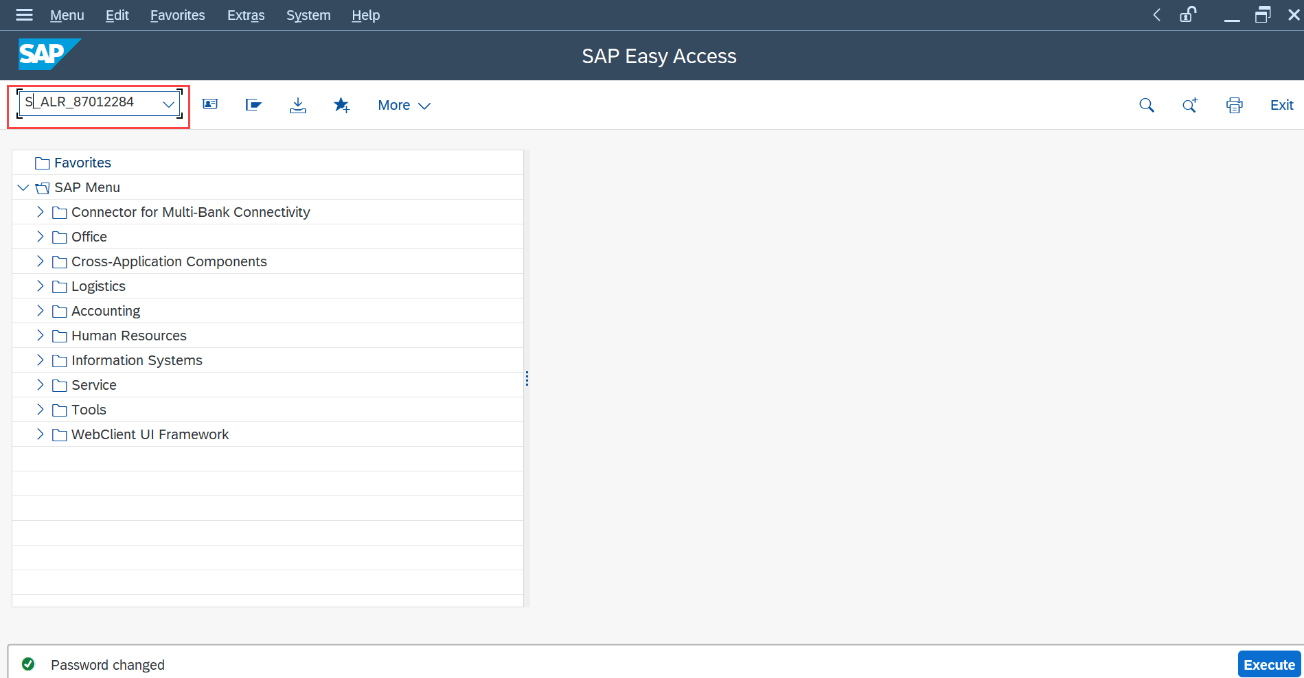 En la barra de menús de SAP, introduzca S_ALR_87012284 como código de transacción y, a continuación, seleccione Ejecutar.