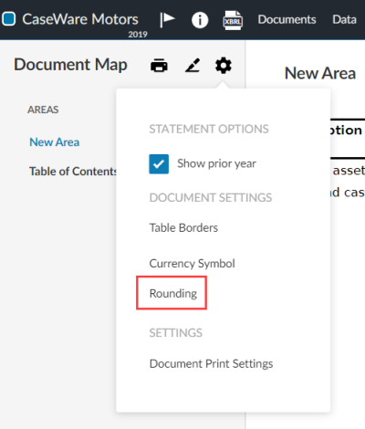Si el redondeo está activado en su producto, puede personalizar la configuración de redondeo utilizada en los estados financieros de la plantilla de empresa o en un archivo de encargo individual.