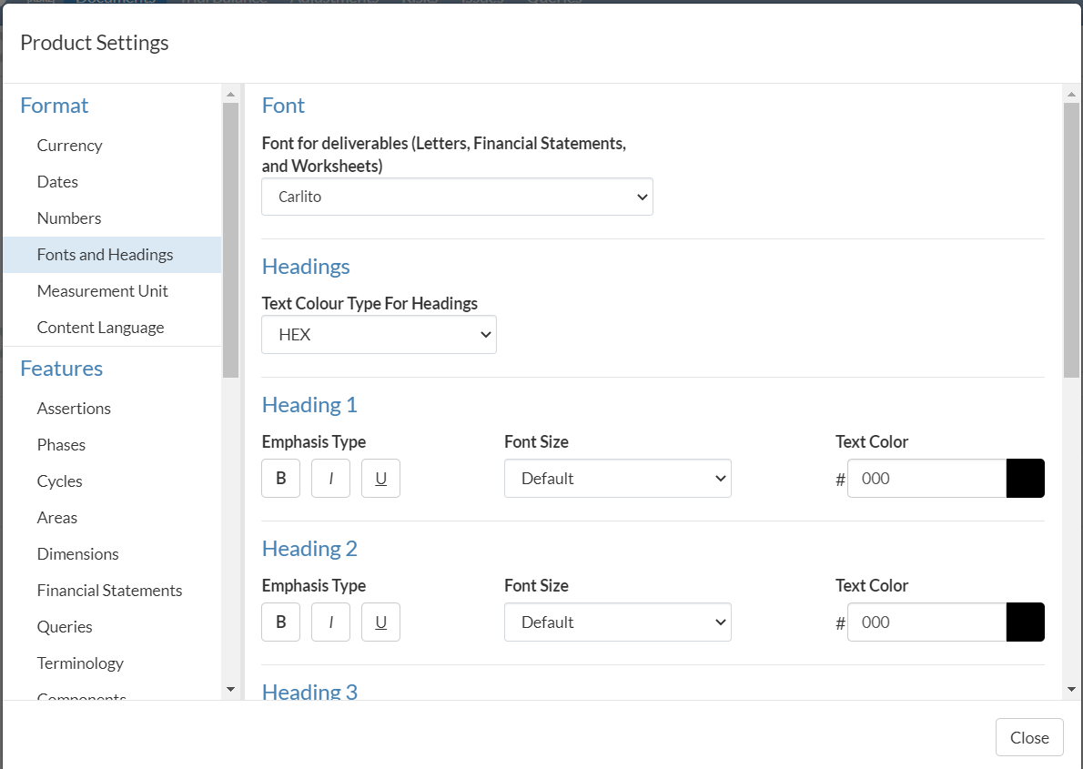 ) dans le menu supérieur, puis choisissez Paramètres. Sélectionnez Format | Polices et titres dans la boîte de dialogue Paramètres du produit qui s'ouvre.