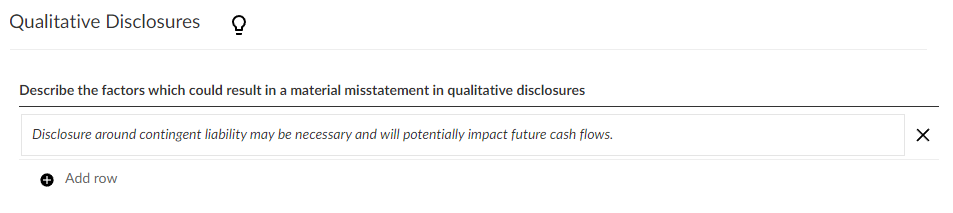 Dans la section Matérialité des performances pour des circonstances spécifiques, saisissez un ou plusieurs facteurs de matérialité pour des circonstances spécifiques.