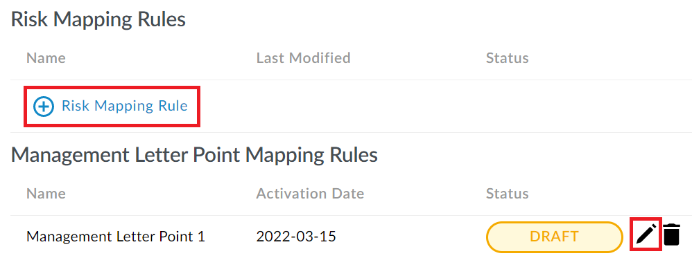 La règle de mappage est enregistrée en tant que projet. Sélectionnez l'icône Modifier (