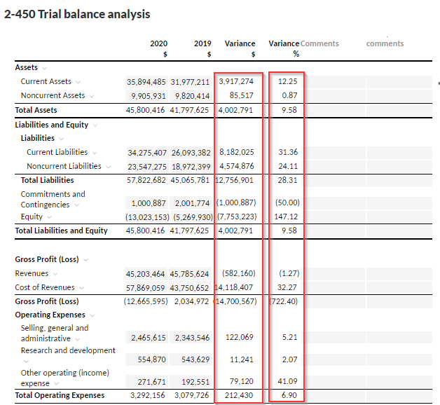 Remarque : Les soldes de l'année en cours dans le document d' analyse de la balance de vérification 2-450 seront modifiés en fonction de vos ajustements. Pour une meilleure pratique, imprimez une copie PDF de l'analyse des montants non ajustés avant d'enregistrer les ajustements, puis sauvegardez-la dans le fichier de la mission.