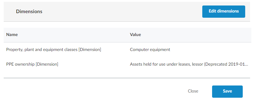 Selecteer, indien relevant, Dimensies bewerken om alle dimensies in de context te bewerken en selecteer vervolgens Bevestigen zodra u uw wijzigingen hebt aangebracht.