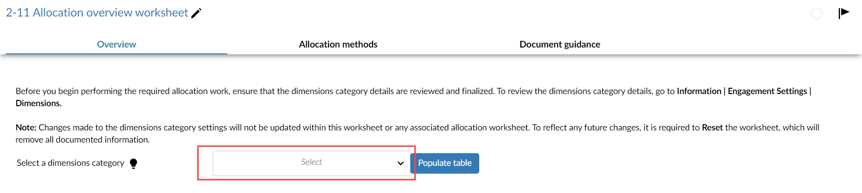 Selecteer in het vervolgkeuzemenu de dimensiecategorie die de dimensies bevat waaraan u uw rekeningsaldi wilt toewijzen.