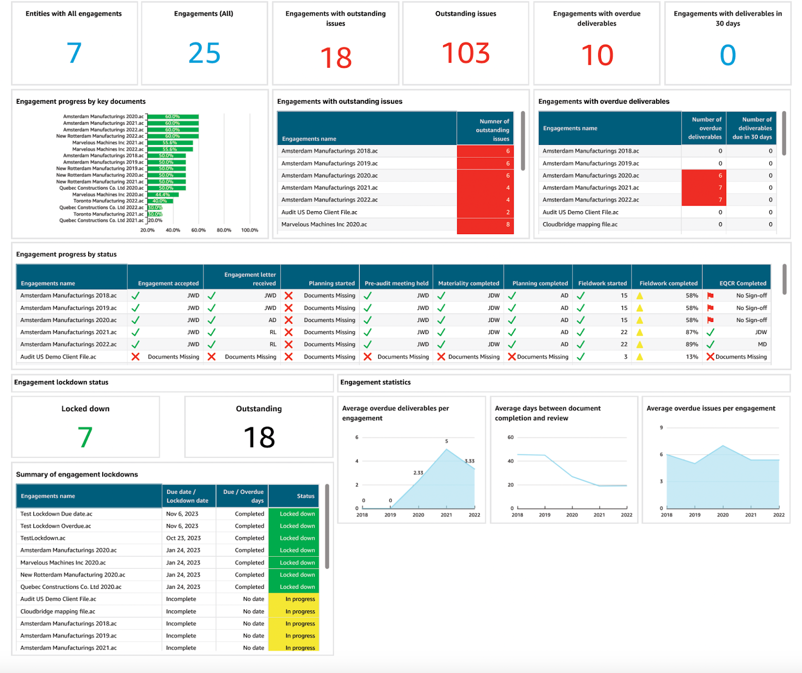 Belangrijke documenten per engagement Toont het percentage ingevulde sleuteldocumenten in vergelijking met onvolledige sleuteldocumenten. Documenten worden ingesteld als "Sleuteldocumenten" op het tabblad Configuratie-instellingen .